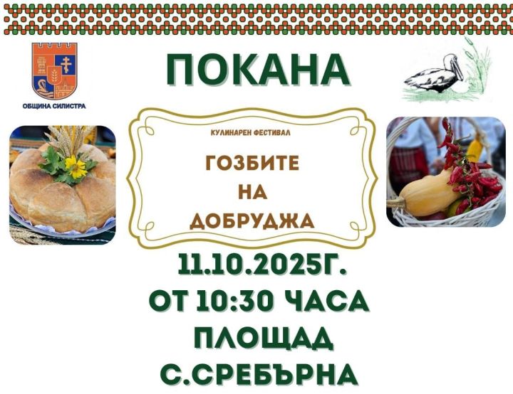 На 11 октомври 2025 г. от 10:30 часа на площада в село Сребърна ще се проведе кулинарният фестивал „Гозбите на Добруджа“ – празник, посветен на богатата добруджанска кухня, традиции и местно гостоприемство.