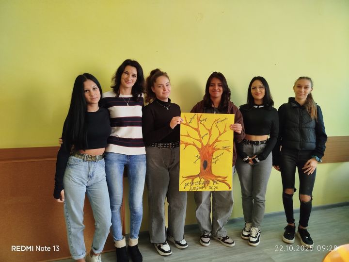 За да изразят символично своето виждане, учениците създадоха постер под формата на „Дърво на демокрацията“. В корените на дървото те записаха ценности като свобода, равенство, справедливост и уважение, а в клоните – действия, чрез които младите хора могат да подкрепят демокрацията: участие в ученически съвети, доброволчество, информираност, активна позиция и добри дела. Всеки лист на клоните носи лично послание за по-добро бъдеще.