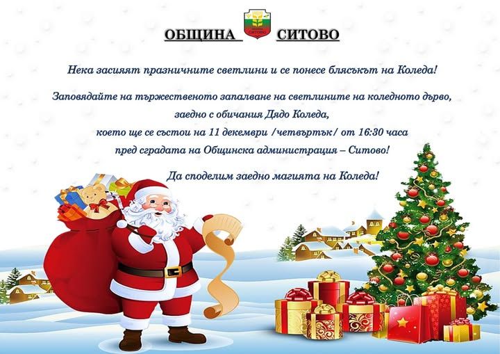 Организаторите призовават всички жители да се включат и заедно да отброят секундите до запалването на празничните светлини, които ще озарят центъра на Ситово и ще поставят началото на Коледния дух.