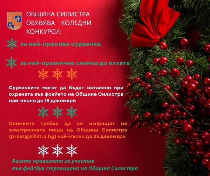 Срок и място за предаване: Сурвачките могат да бъдат оставени при охраната във фоайето на Община Силистра (ул. „Симеон Велики“ №33) най-късно до 18 декември.